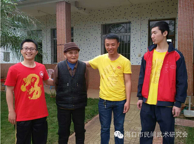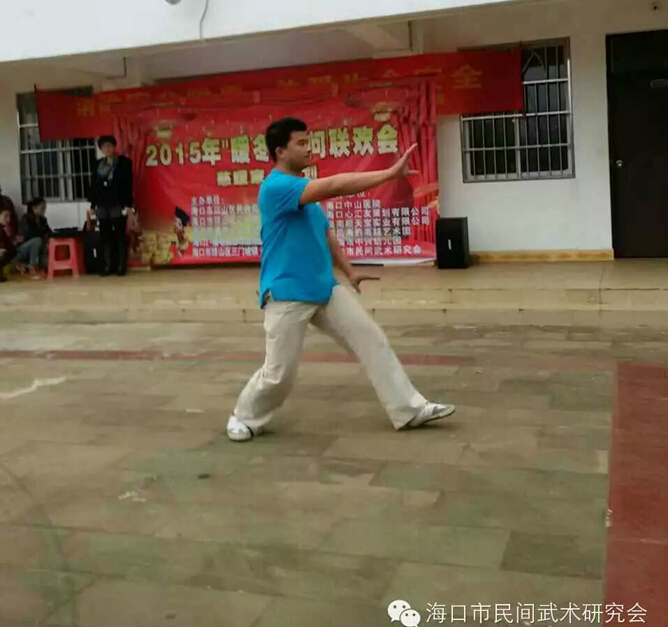 武研会慰问老人,并表演节目有:陈兴-《太极拳》;陈希贤、钟家瑜-《五阴棍》;阿龙《四门拳》等。